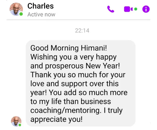 I appreciated her continual checking in, her encouragement and her support! I give Himani Jane 5 stars!