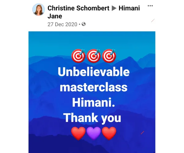 One of the things I have seen the most growth in my business is with Himani's ability to challenge you in such a gentle and loving way.